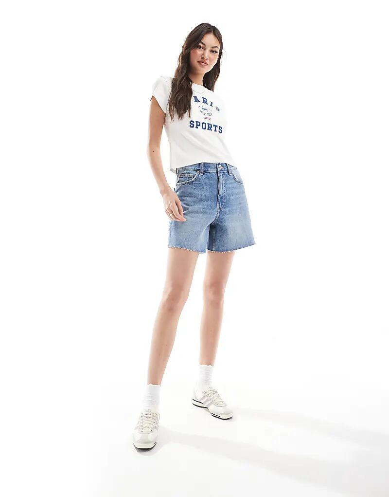 Джинсовые шорты-бермуды Pull&Bear средне-синего цвета
