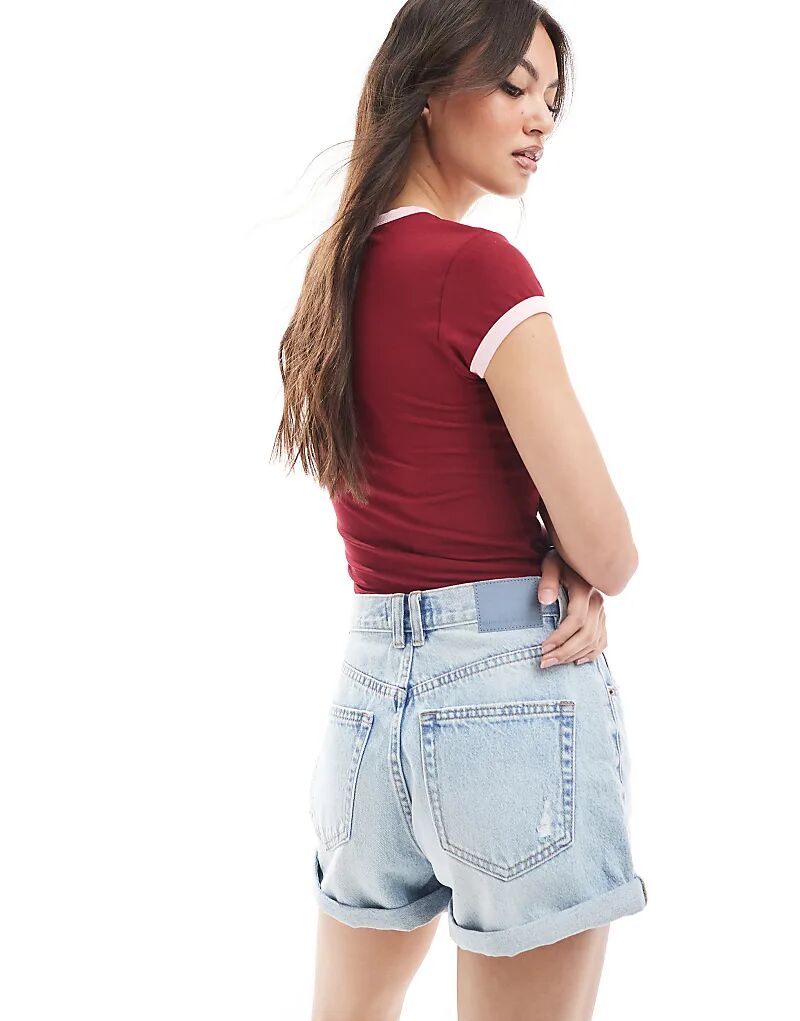 Джинсовые шорты Mom с отворотами Pull&Bear бледно-голубого цвета