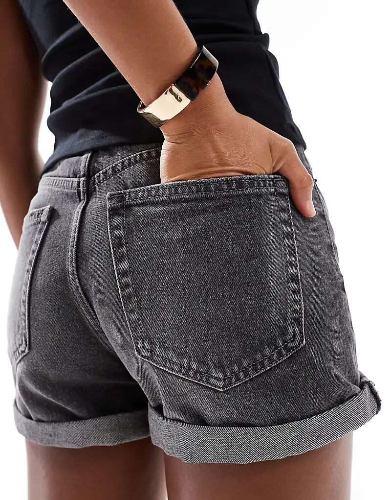 Джинсовые шорты Mom с отворотами Pull&Bear серого цвета