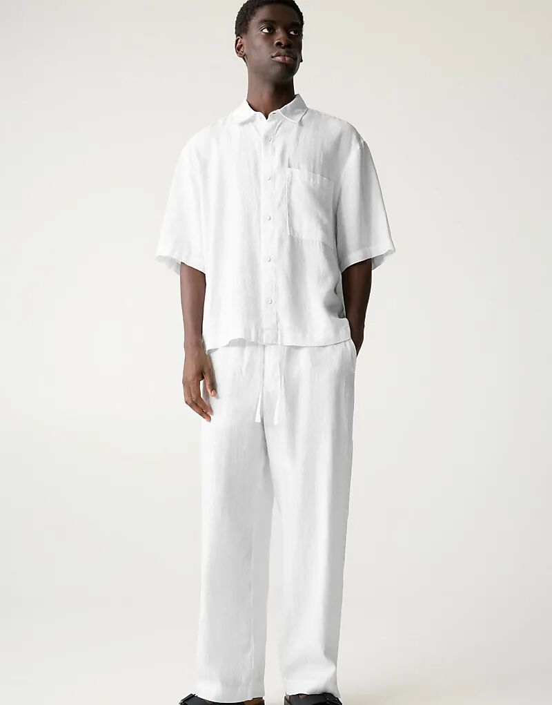 Рубашка свободного кроя Pull&Bear из 100% льна цвета «кремовый»