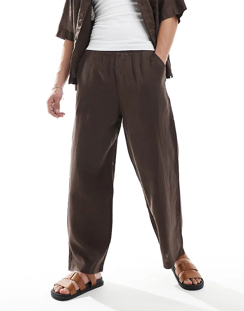 Спортивные брюки Pull&Bear из 100% льна коричневого цвета