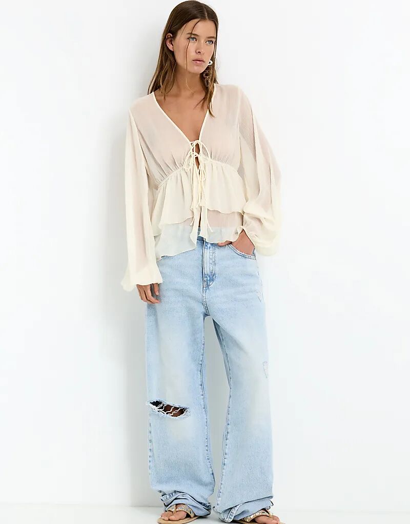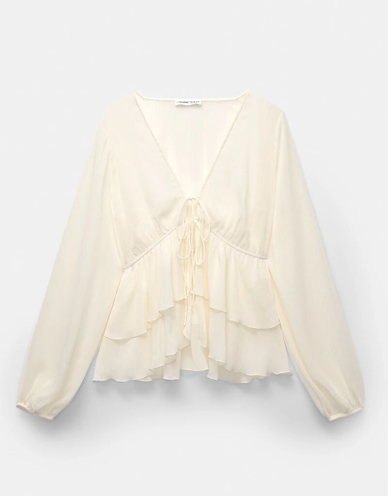 Свободная блузка Pull&Bear с оборками цвета льда 3 344₽