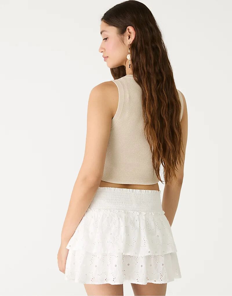 Юбка-шорты Stradivarius с вышивкой белого цвета