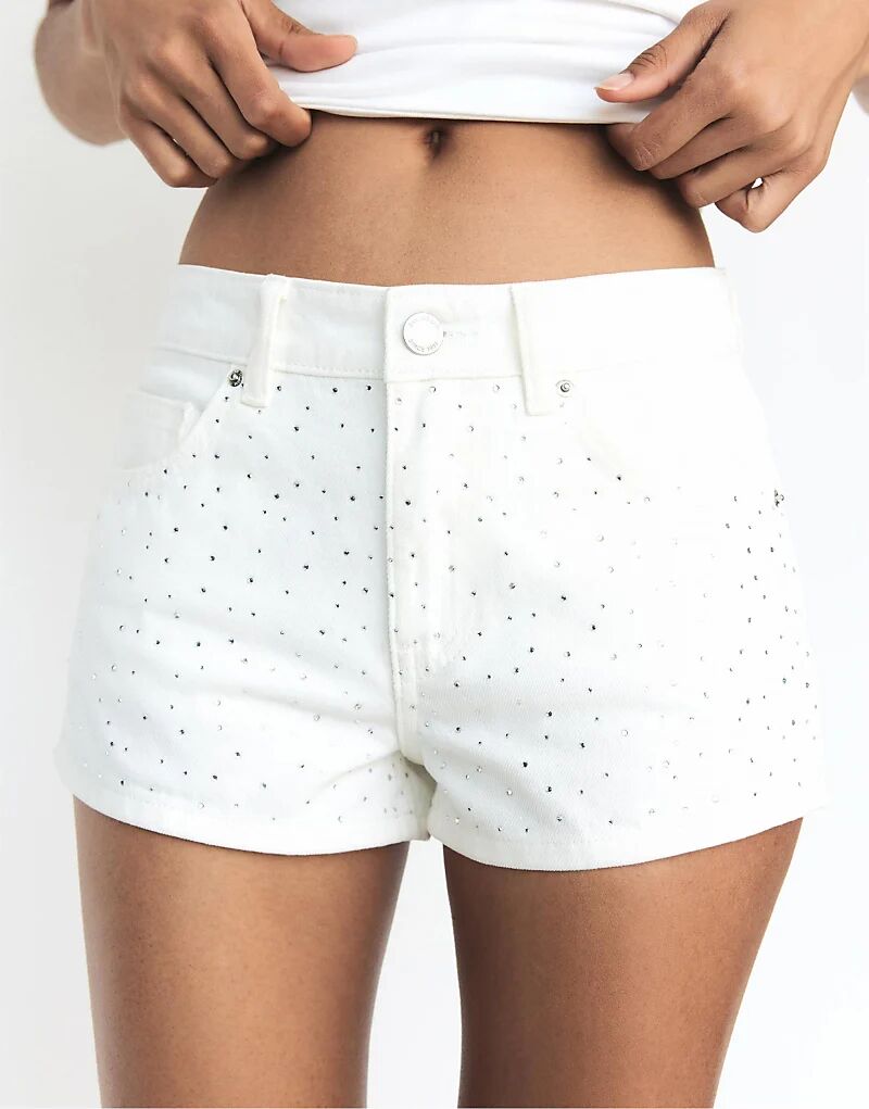 Джинсовые шорты Pull&Bear со стразами белого цвета