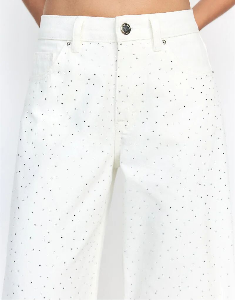 Джинсы Pull&Bear прямого кроя со стразами белого цвета