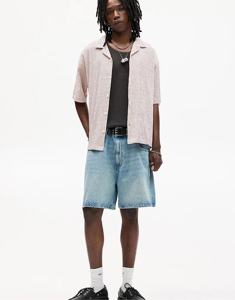 Рубашка с короткими рукавами Pull&Bear в клетку красного цвета