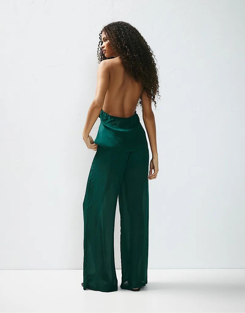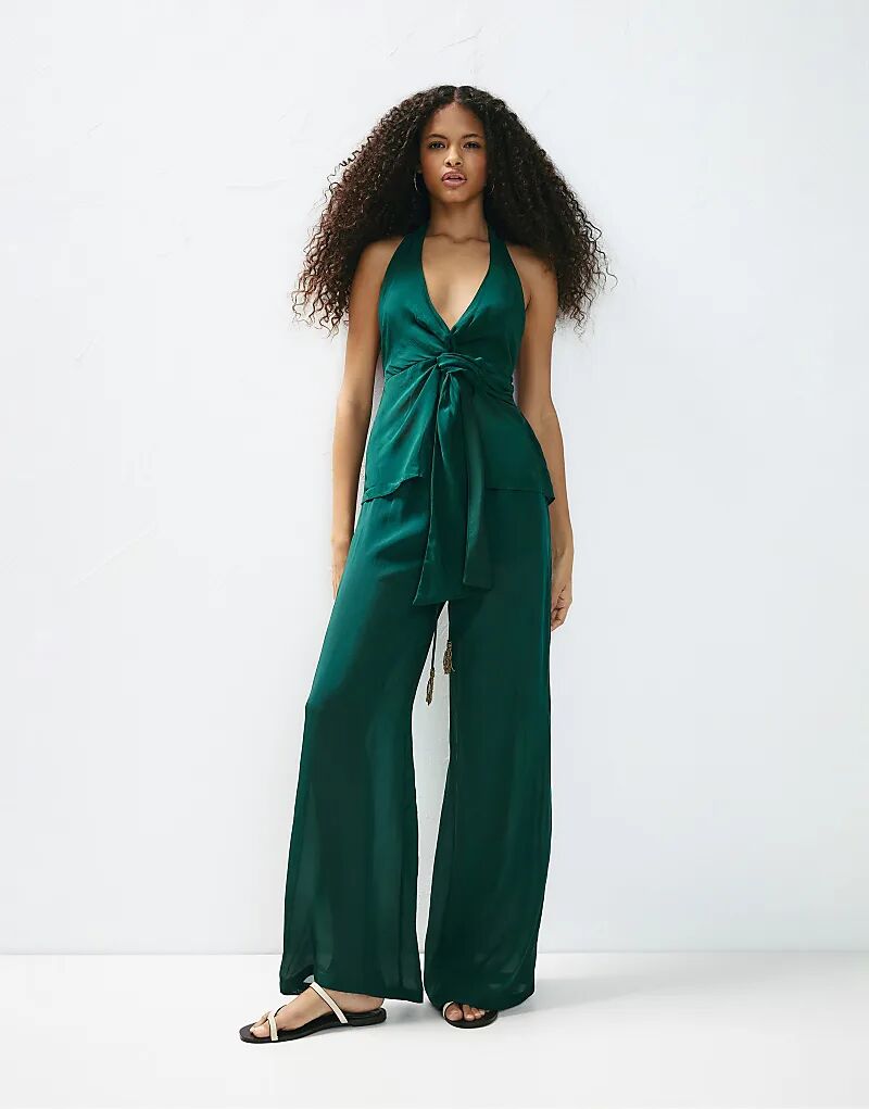 Топ-халтер Pull&Bear с запахом и узлом зеленого цвета