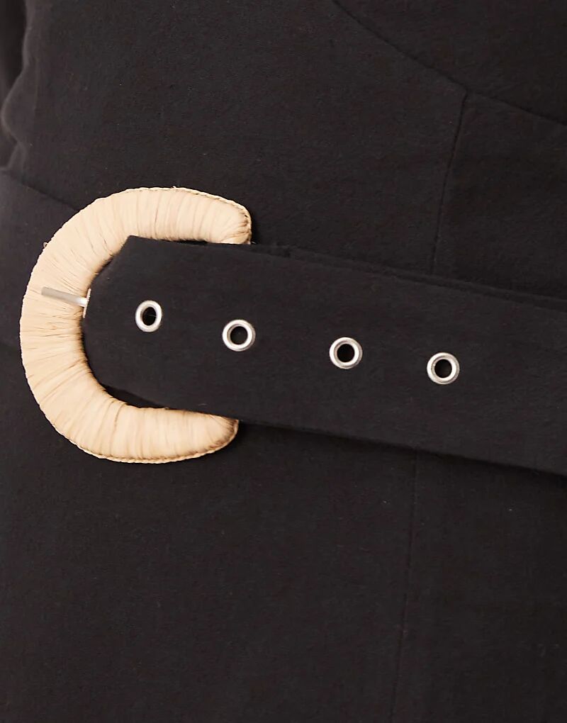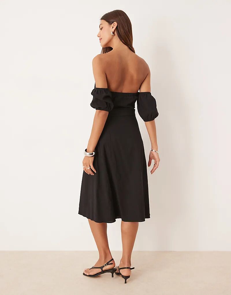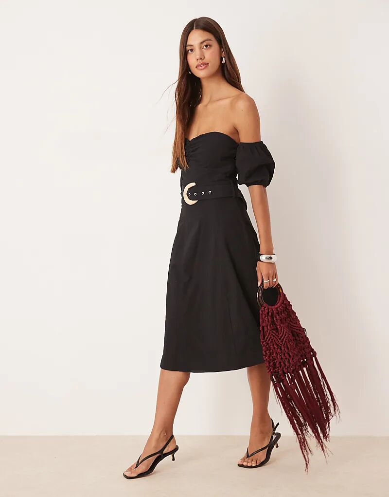 Платье миди с поясом и вырезом сердечком черного цвета