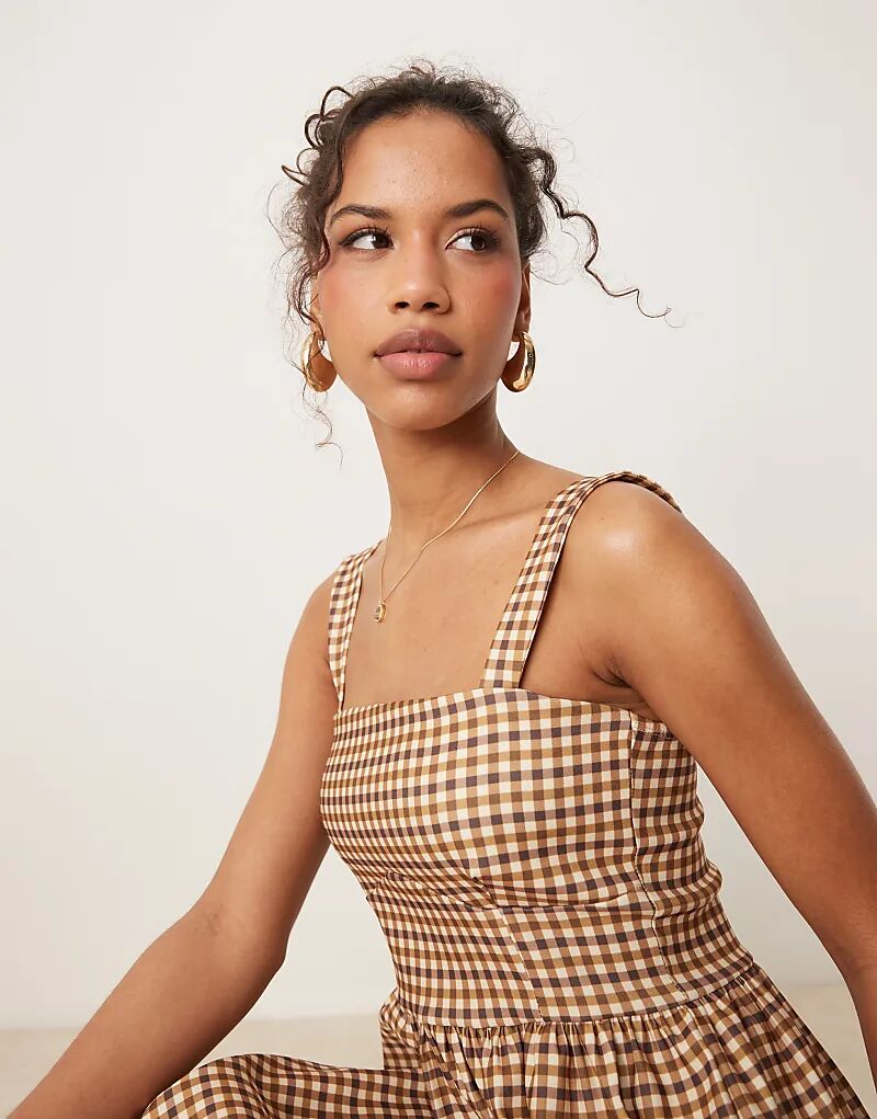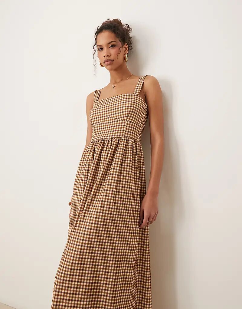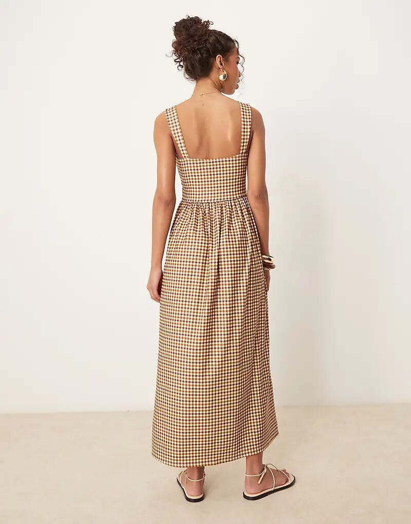 Платье миди с лифом Bengaline ASOS DESIGN в коричневую клетку