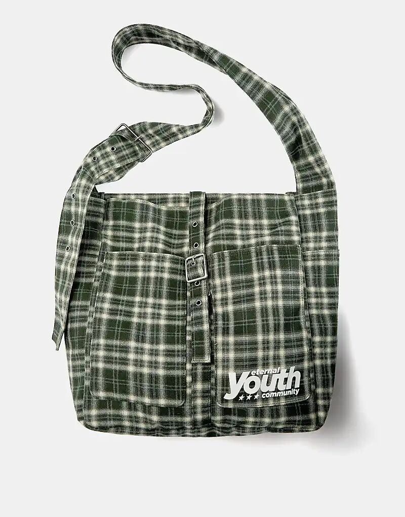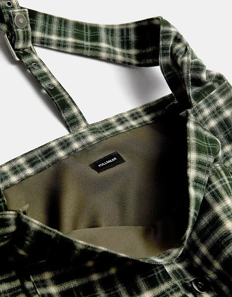 Сумка через плечо Pull&Bear в клетку с пряжкой зеленого цвета