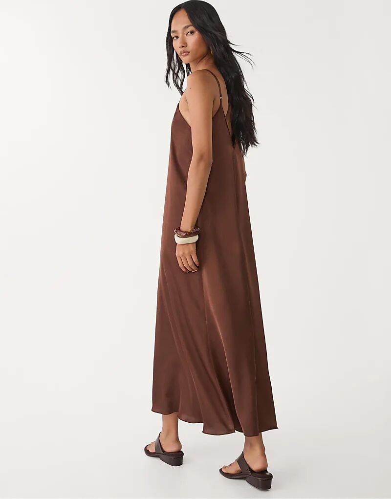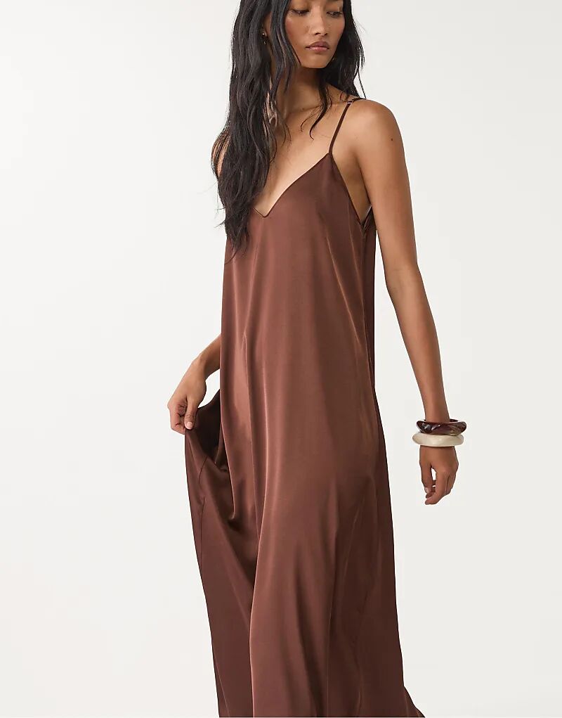 Длинное атласное платье Stradivarius коричневого цвета 4 419₽