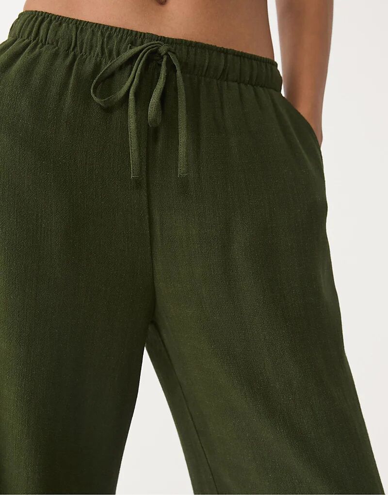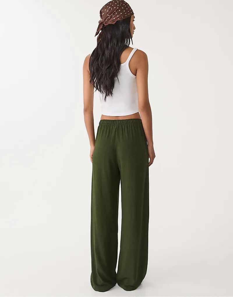 Брюки Stradivarius из льняной смеси зеленого цвета