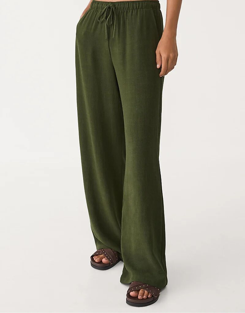 Брюки Stradivarius из льняной смеси зеленого цвета 3 847₽