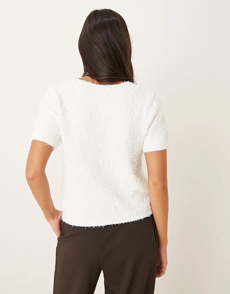 Пушистый кардиган Mango с короткими рукавами белого цвета