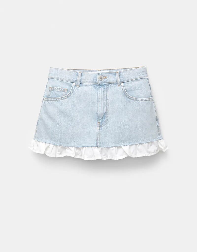 Мини-юбка из денима Pull&Bear с оборками, средне-синего цвета