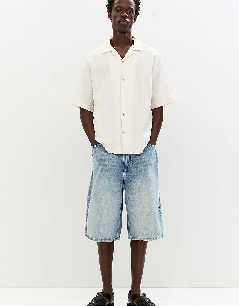 Рубашка из крепа Pull&Bear с короткими рукавами цвета «крем»