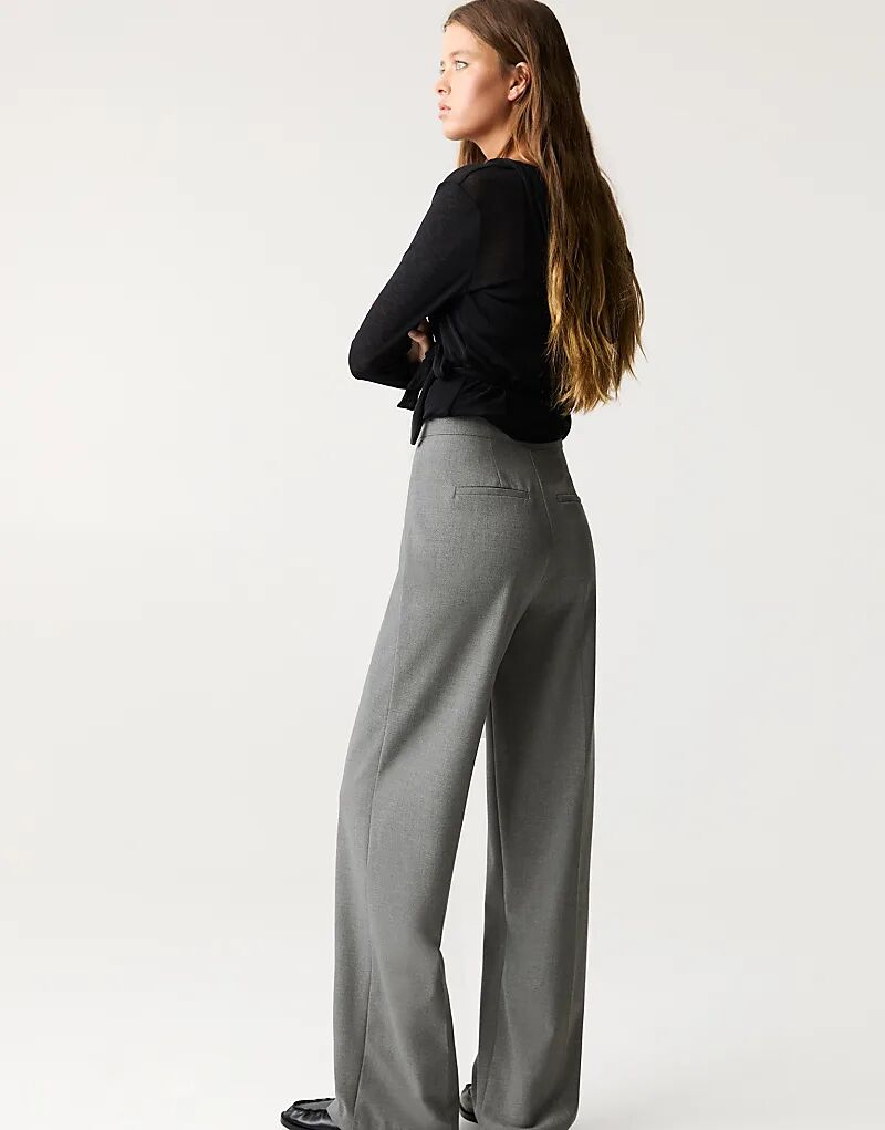 Строгие брюки Pull&Bear с высокой талией, средне-серого цвета 6 031₽