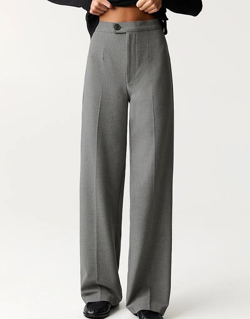 Строгие брюки Pull&Bear с высокой талией, средне-серого цвета