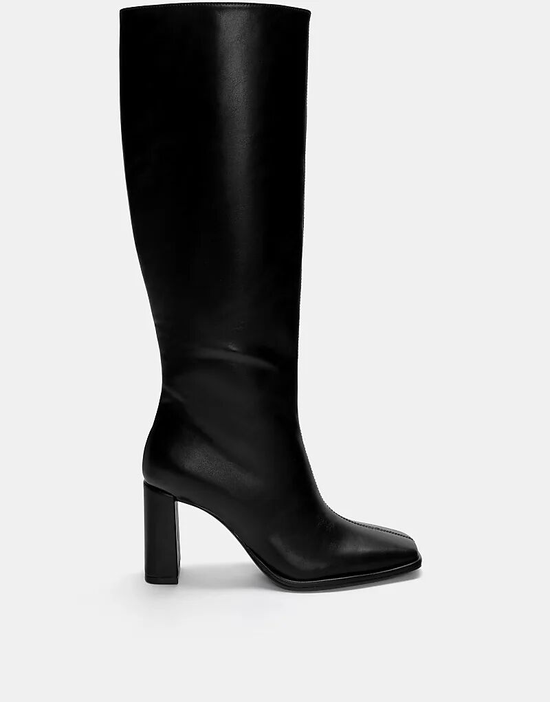 Черные сапоги на высоком каблуке Pull&Bear