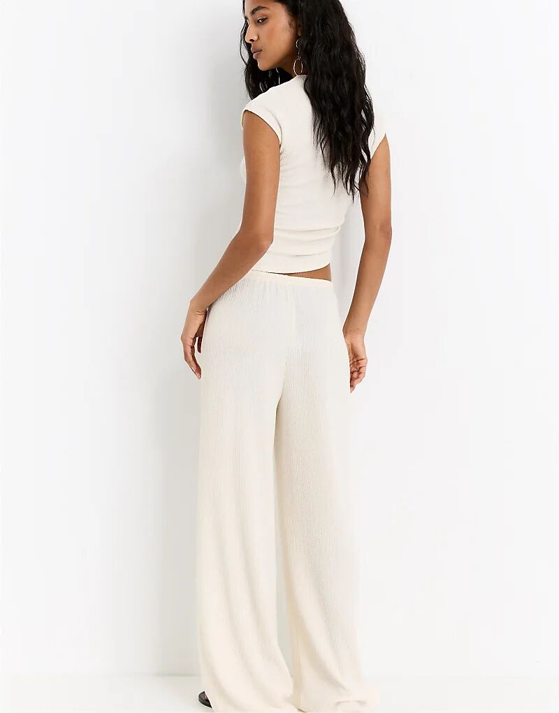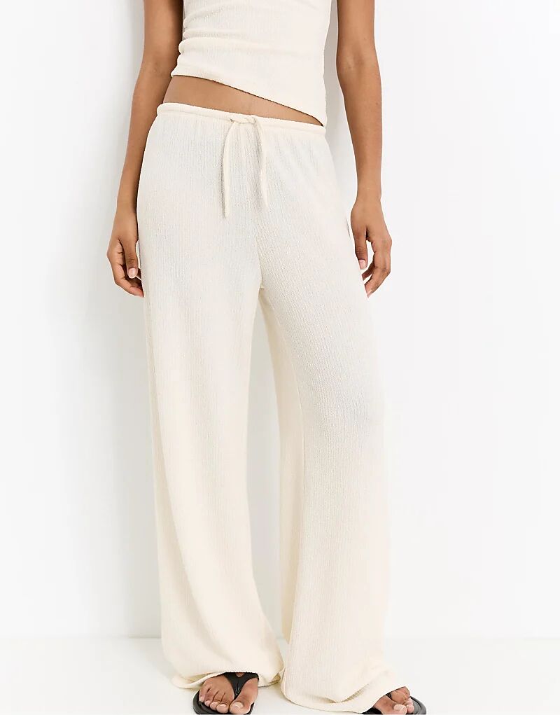 Широкие креповые брюки Pull&Bear бежевого цвета