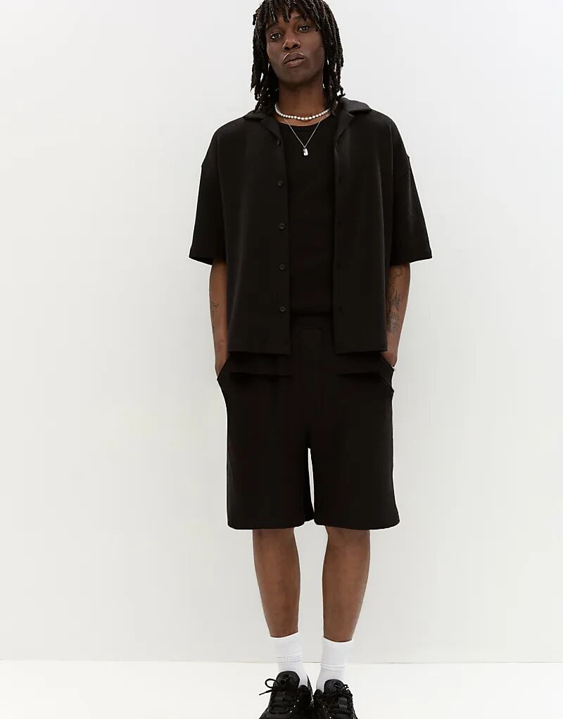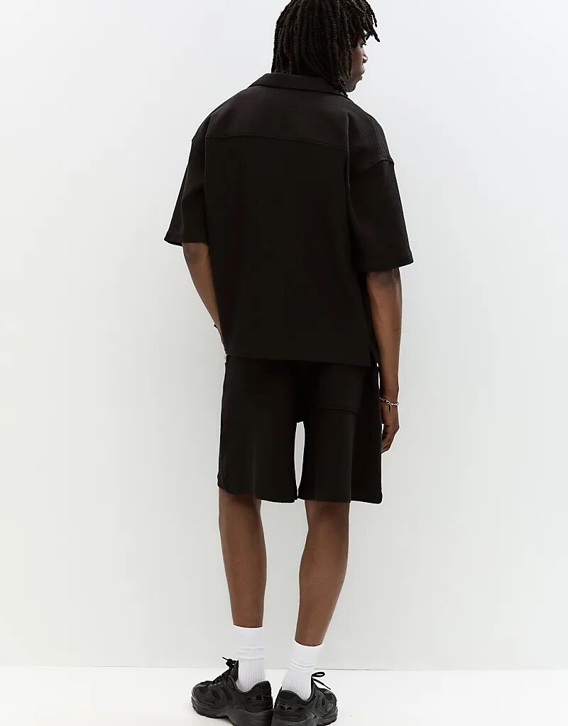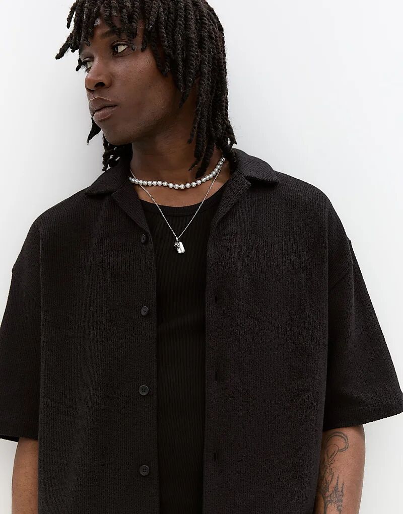 Рубашка Pull&Bear в деревенском стиле с короткими рукавами черного цвета