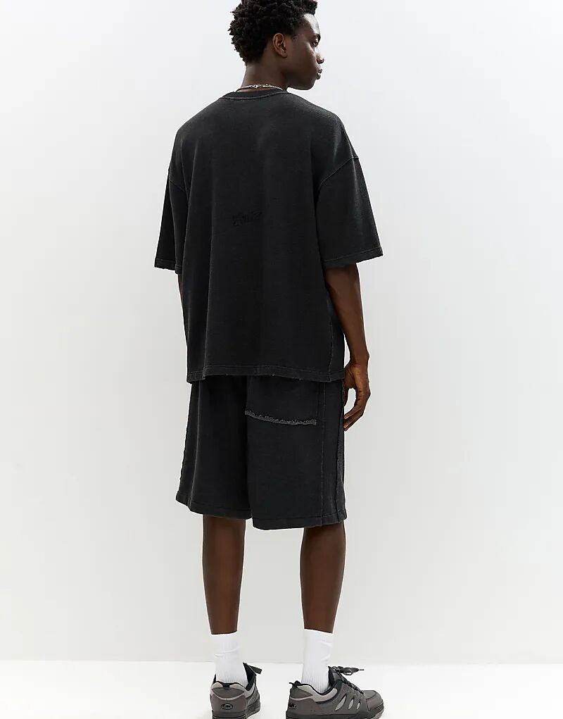 Шорты-бермуды STWD от Pull&Bear, потертые, черного цвета