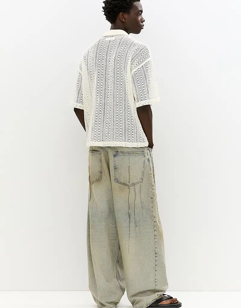 Вязаная крючком рубашка с короткими рукавами Pull&Bear цвета «бежевый»
