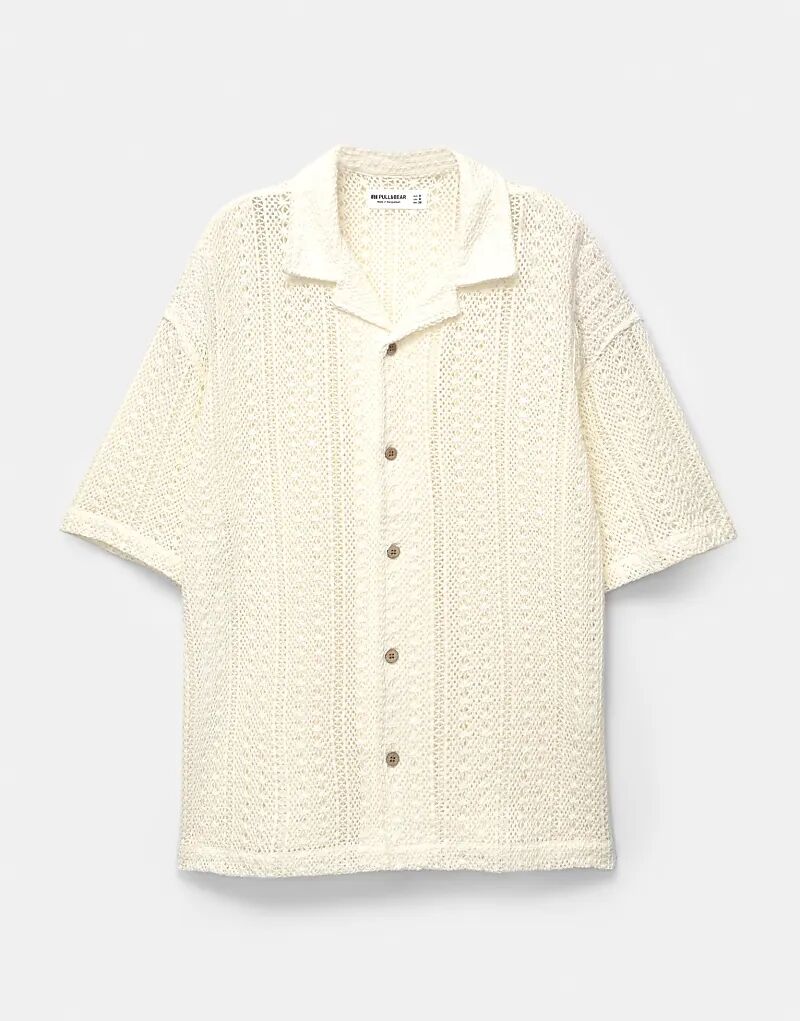Вязаная крючком рубашка с короткими рукавами Pull&Bear цвета «бежевый» 2 908₽