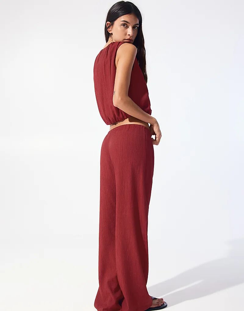 Брюки в деревенском пижамном стиле Pull&Bear бордового цвета