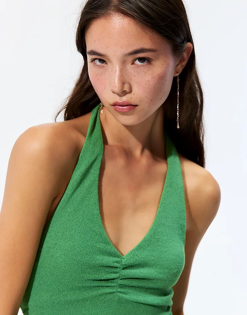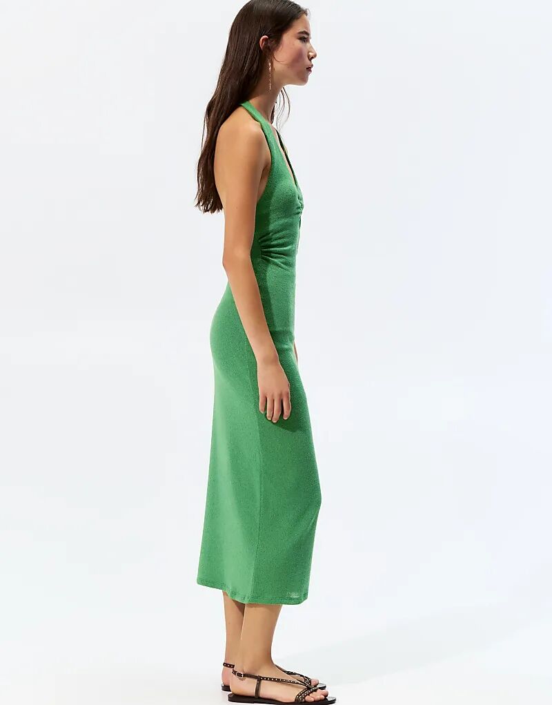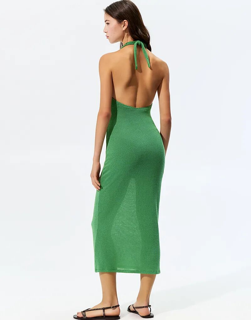 Трикотажное платье миди Pull&Bear с халтер-воротником, средне-зеленого цвета