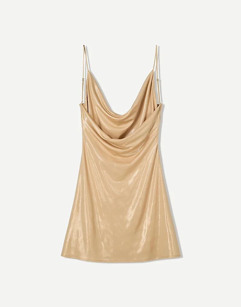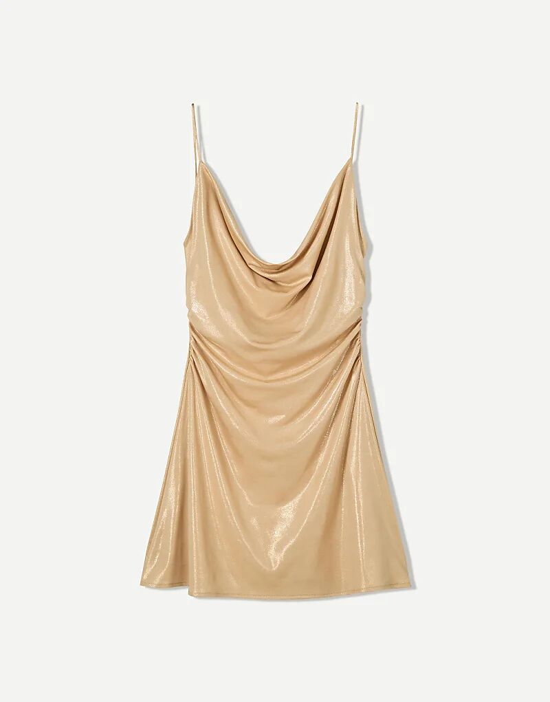 Мини-платье Bershka с блестящими бретельками золотого цвета