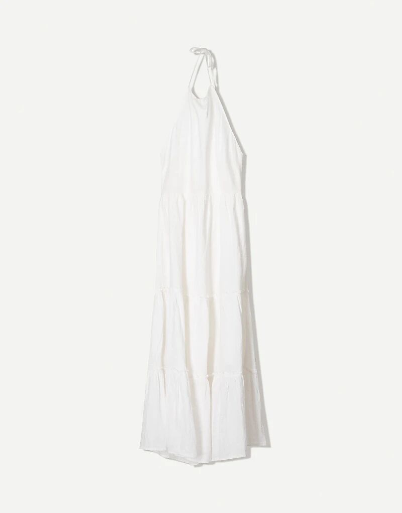 Платье миди Bershka с оборками и халтером белого цвета 2 585₽