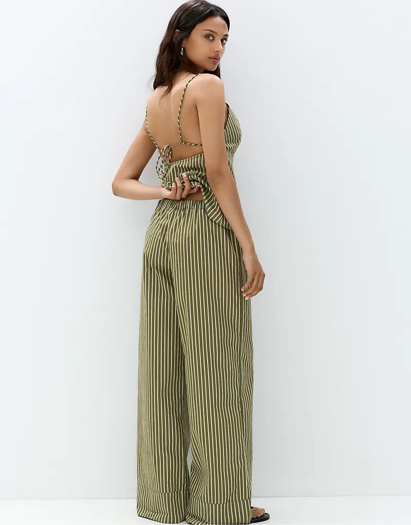 Пижамные штаны Pull&Bear в полоску зеленого цвета