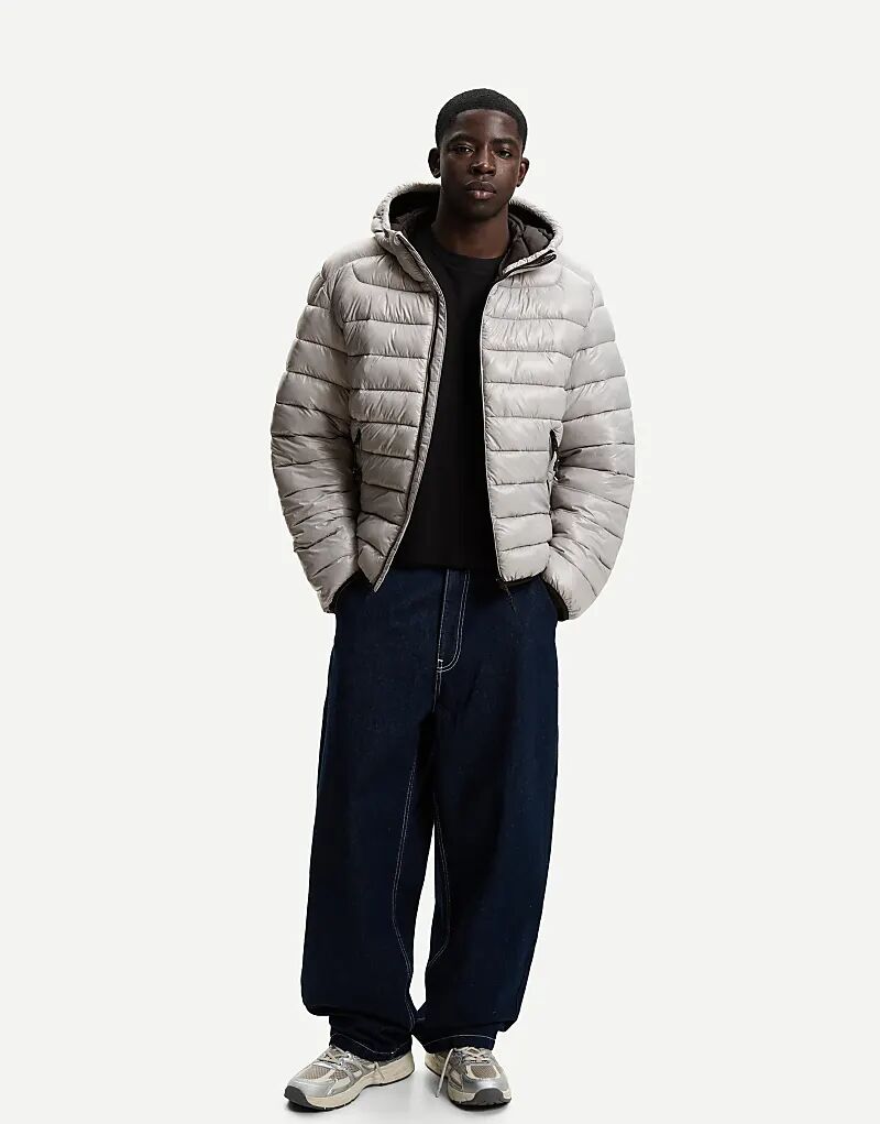 Легкая стеганая куртка Bershka серого цвета 3 726₽