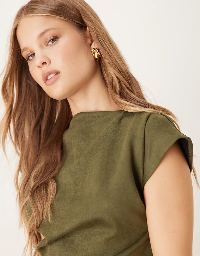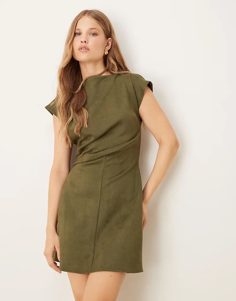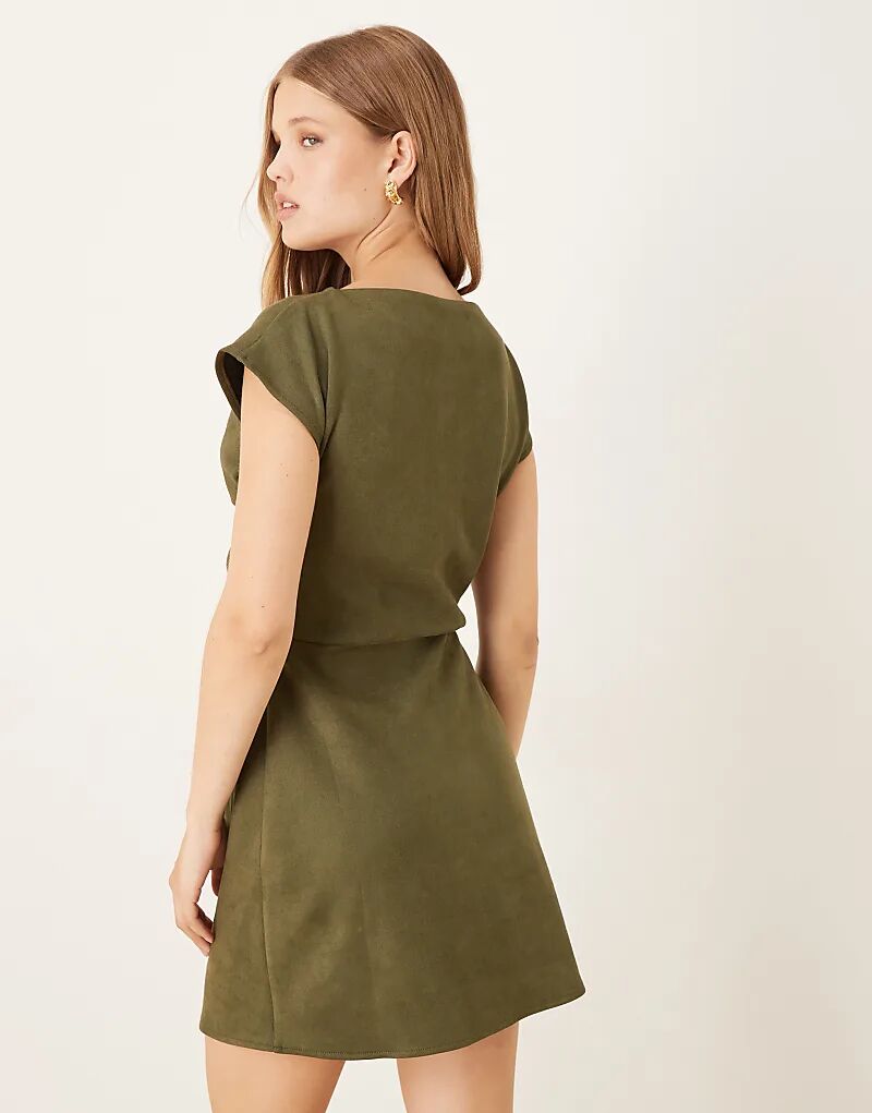 Мини-платье из замши-скуба с драпировкой цвета хаки от ASOS DESIGN