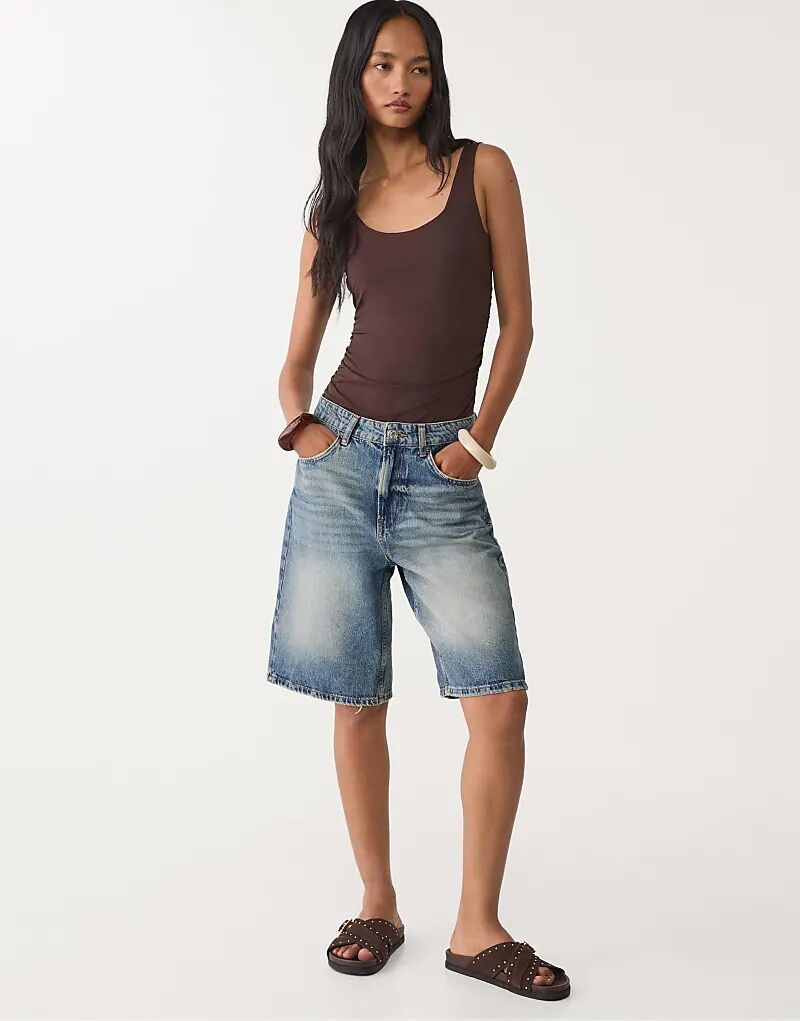 Боди Stradivarius из полиамида со сборками коричневого цвета