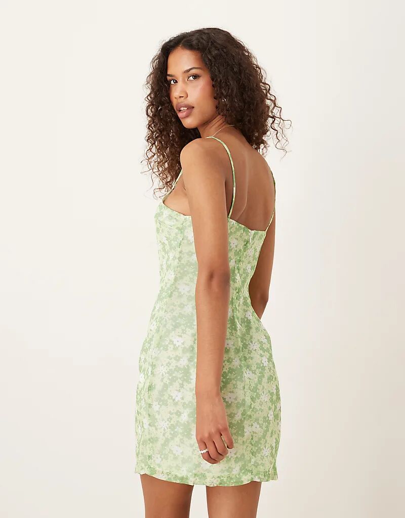 Гламурное мини-платье без рукавов в яблочно-зеленом цвете