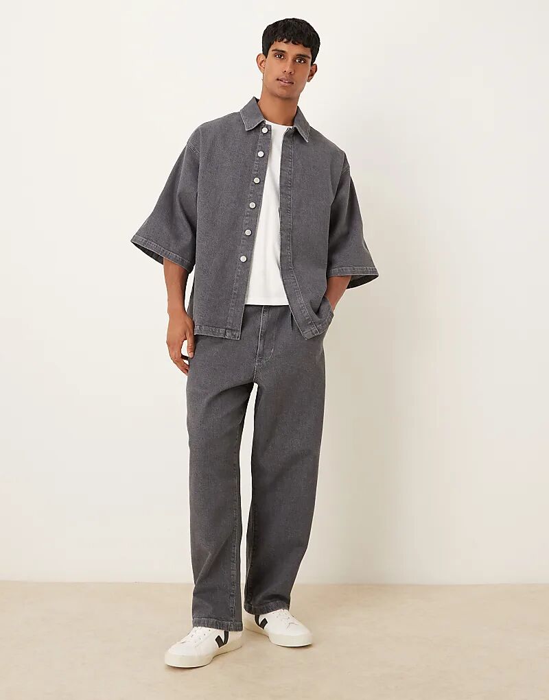 Свободные зауженные джинсы ASOS DESIGN Coord серого цвета