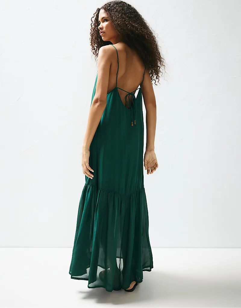 Платье миди Pull&Bear с бретелями, расшитыми бисером, зеленого цвета