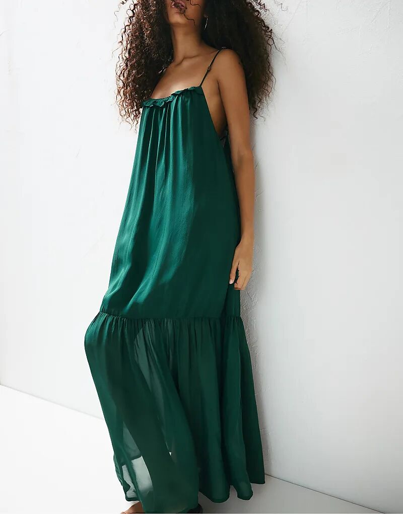 Платье миди Pull&Bear с бретелями, расшитыми бисером, зеленого цвета 3 466₽