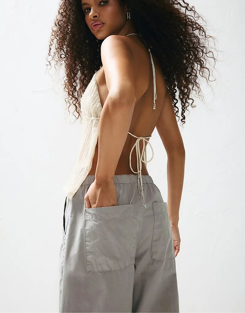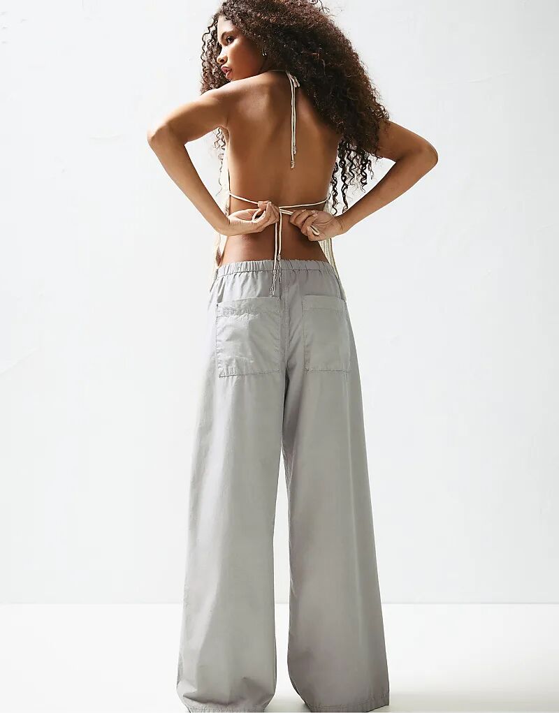 Брюки-мешки Pull&Bear Poplin серого цвета