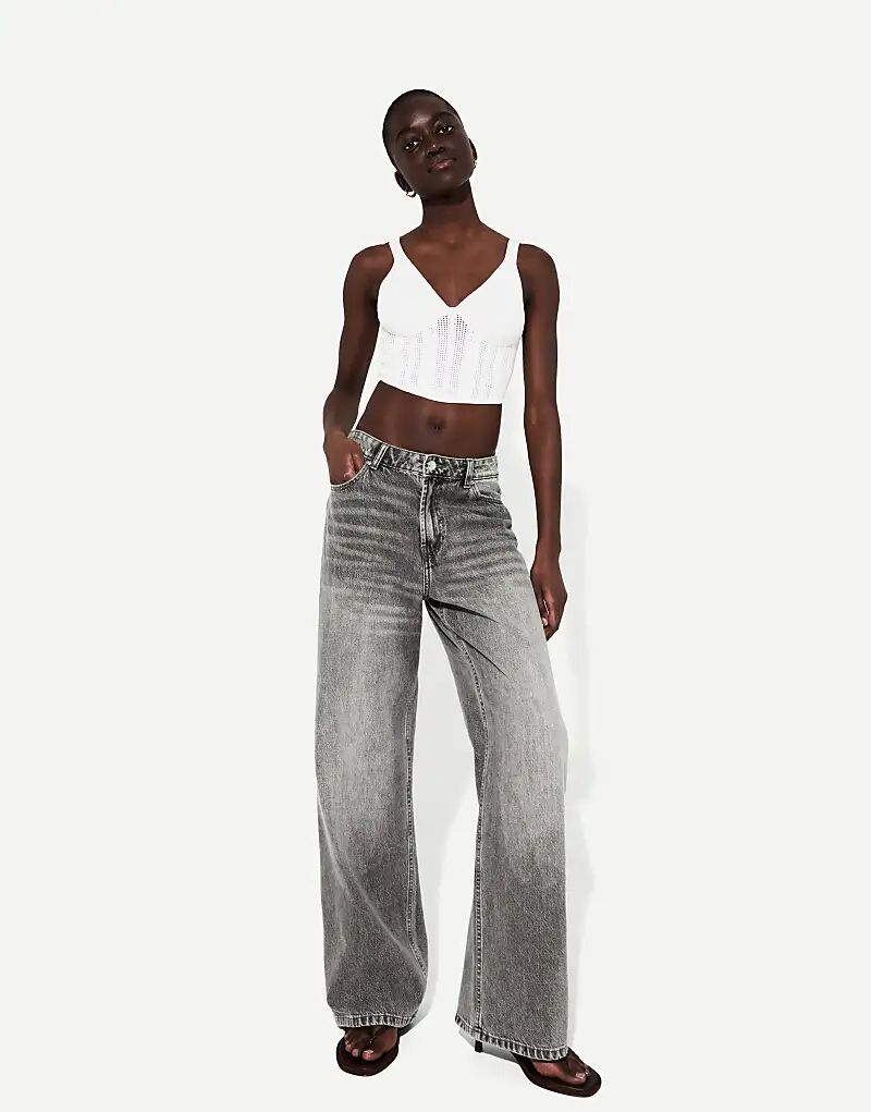 Мешковатые джинсы Bershka Petite серого цвета 4 470₽