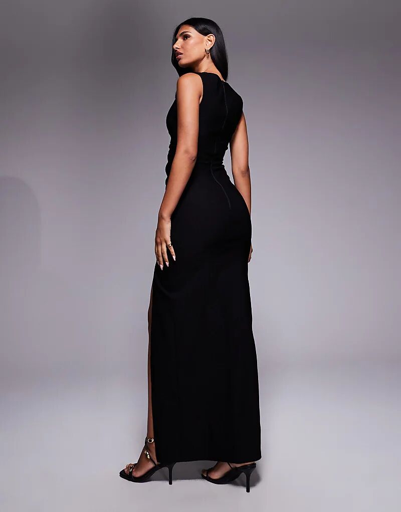 Платье макси Vesper bengaline с разрезами спереди по бокам, черное
