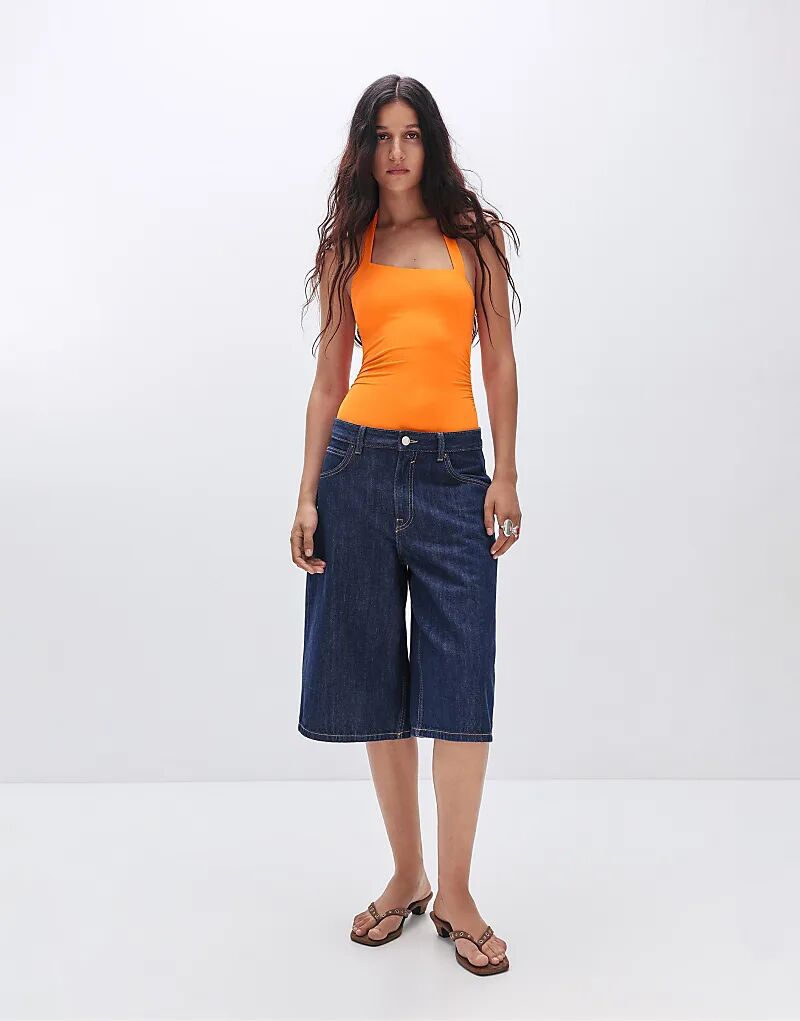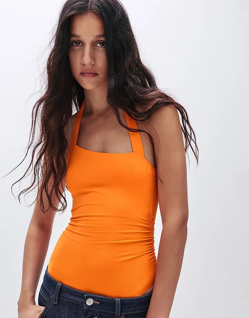 Асимметричный боди Pull&Bear из полиамида оранжевого цвета