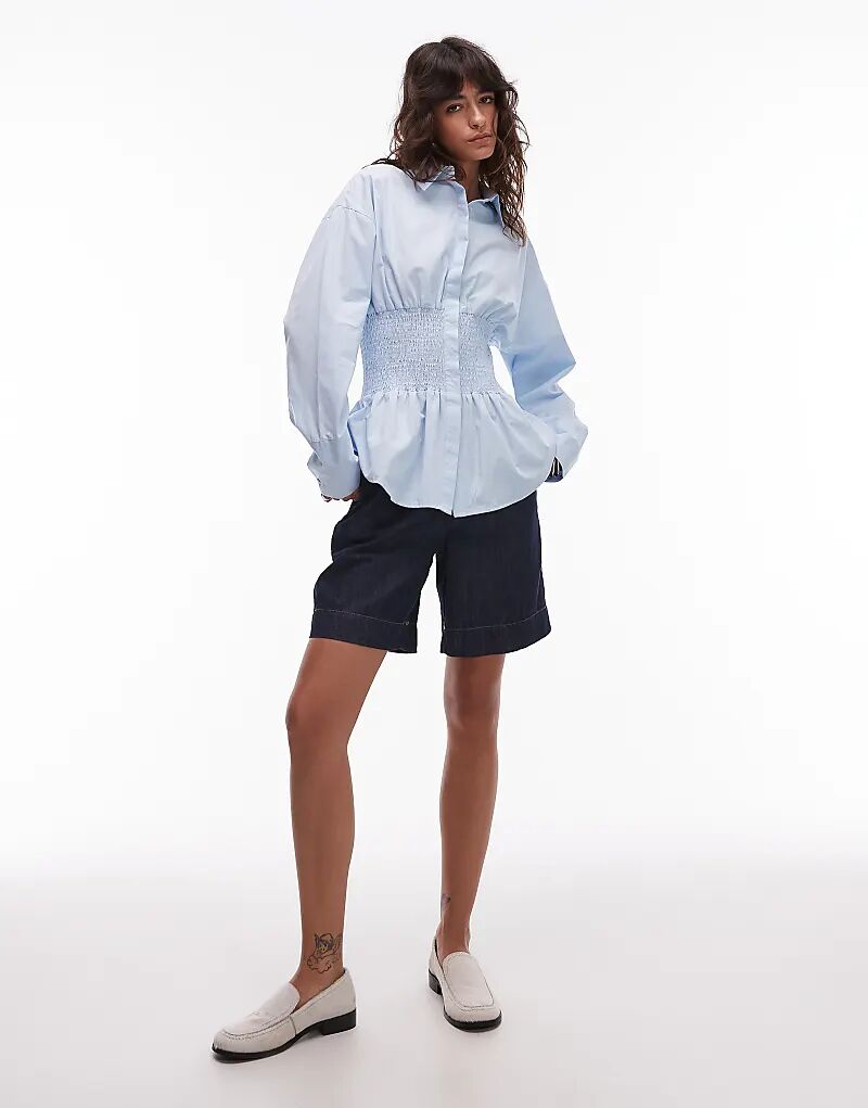 Рубашка с присборенной талией ASOS DESIGN синего цвета