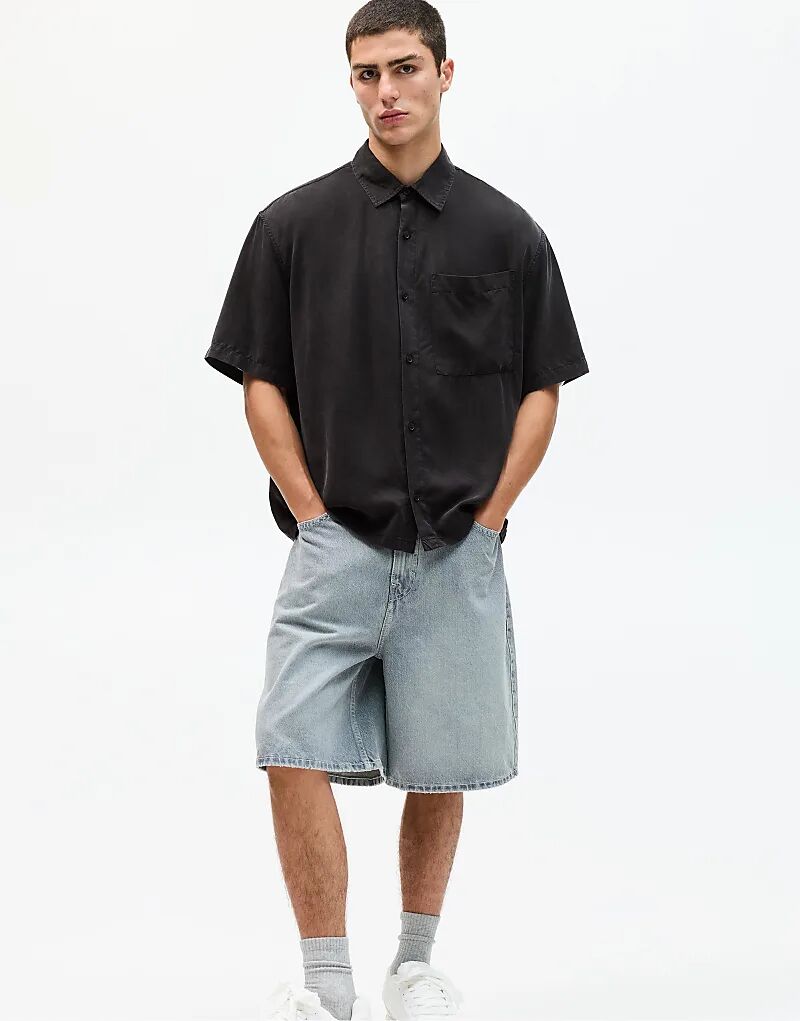 Рубашка Pull&Bear с короткими рукавами черного цвета