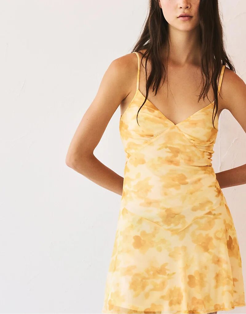 Короткое платье с принтом Pull&Bear желтого цвета 3 214₽