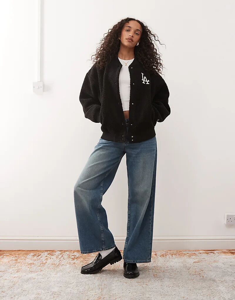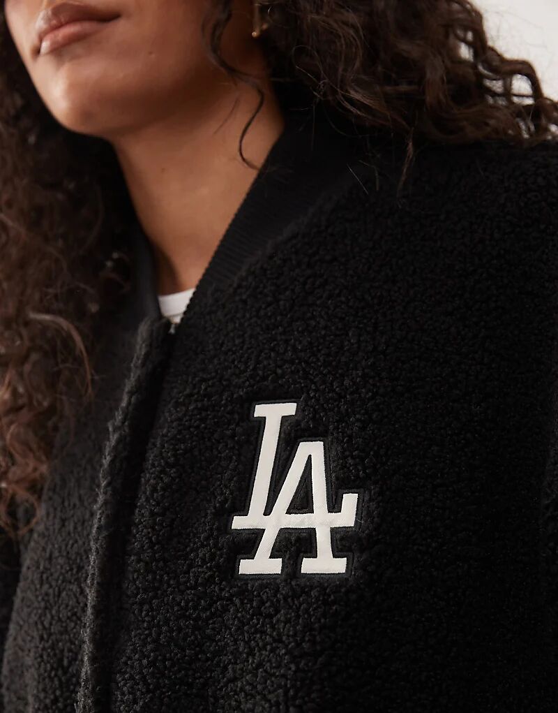 Куртка-бомбер New Era LA Dodgers из шерпы черного цвета
