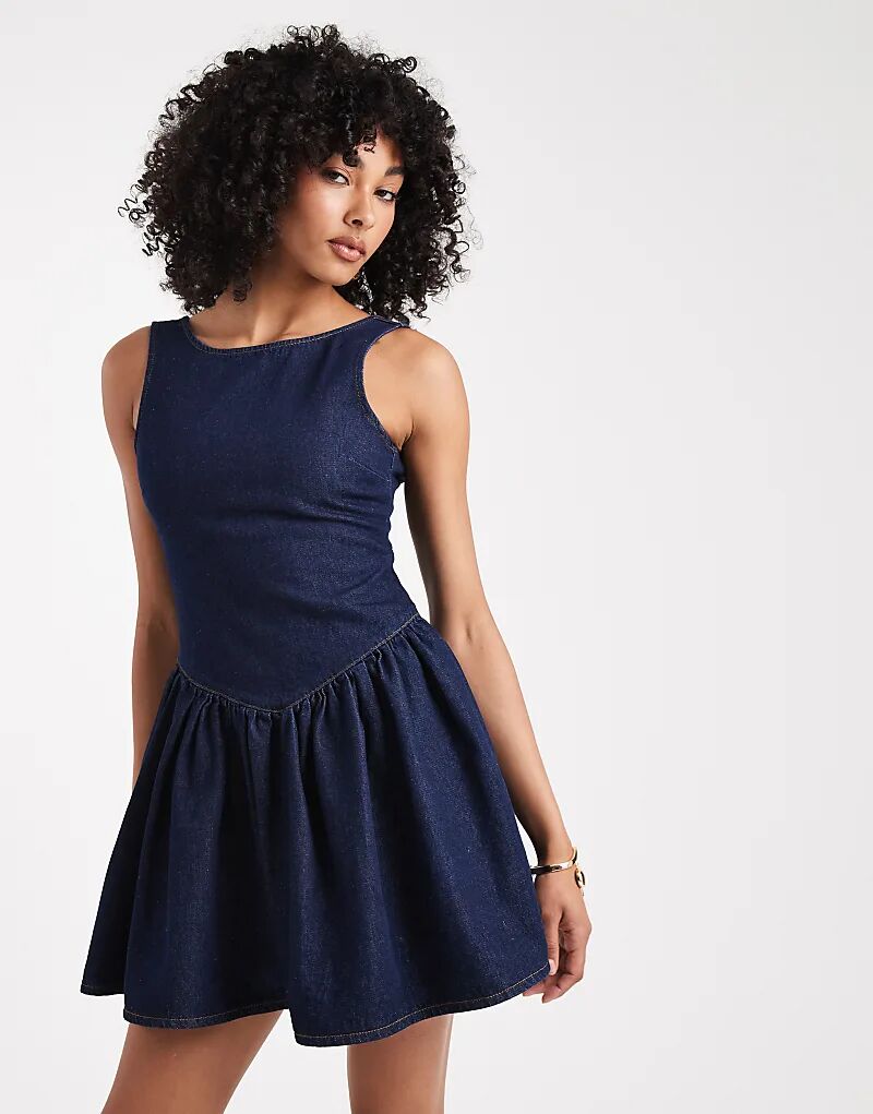 Джинсовое мини-платье Miss Selfridge с заниженной талией синего цвета