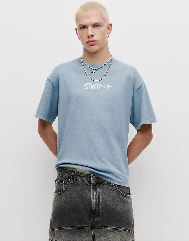 Футболка Pull&Bear Stwd с облаками и самолетом синего цвета 2 487₽